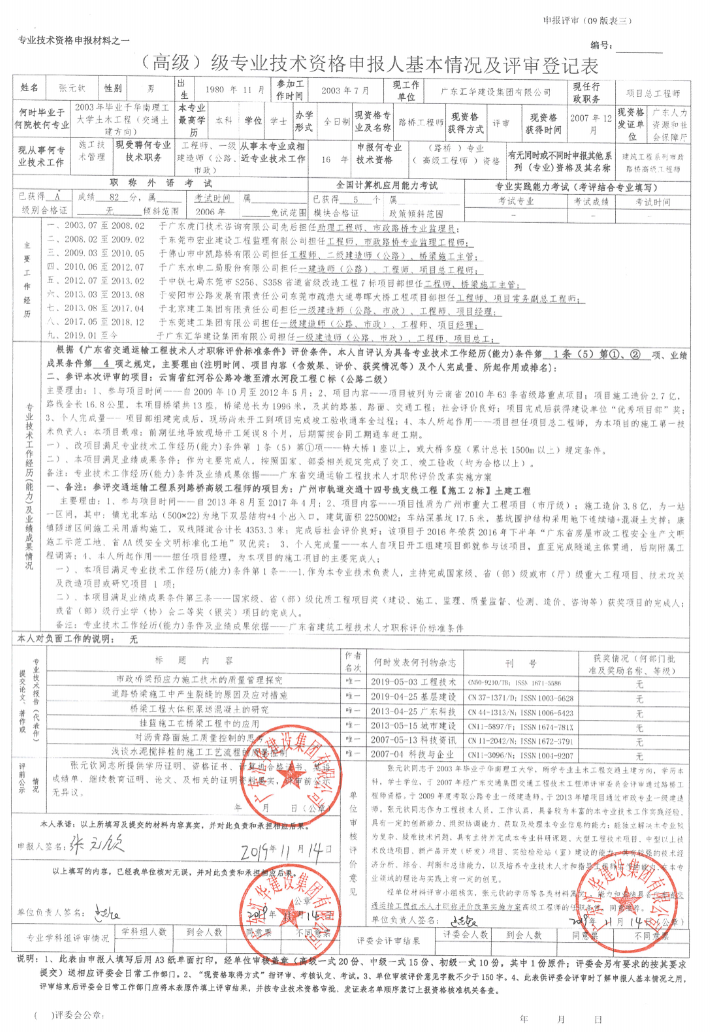 公示內(nèi)容:《高級專業(yè)技術(shù)資格申報人基本情況及評審登記表》。