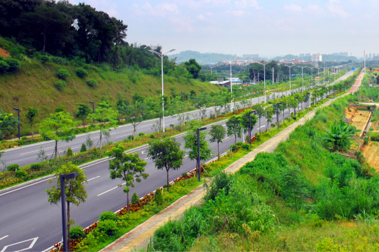 特征:該項目位于清遠市區鳳翔北路,高技術、高難度的解決了鳳翔北路與其它3條交叉道路的流通情況,改善了該路段的擁堵。